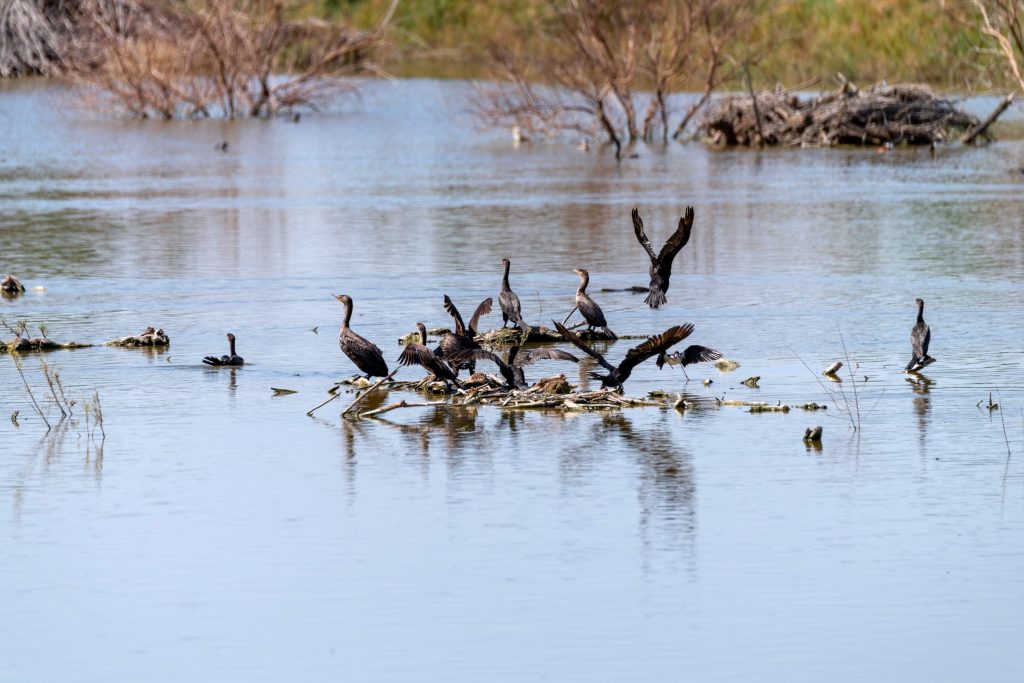 Los estanques recientemente llenados en el proyecto Hábitat para la Conservación de Especies (SCH) están mostrando beneficios ecológicos prometedores, especialmente para las poblaciones de aves locales y migratorias. Múltiples especies de aves están utilizando activamente estos humedales restaurados, lo que indica un cambio positivo en la biodiversidad de la región. En particular, el regreso de especies clave como el pelícano pardo y el pelícano blanco, ambos indicadores importantes de la salud ambiental, destaca el prometedor éxito de este proyecto de restauración.